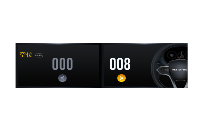 兩塊 32 寸高清 LCD 屏拼接組成,顯示清晰,外形美觀,能夠直觀顯示車位信息,引導(dǎo)車主到達空車位區(qū)域。